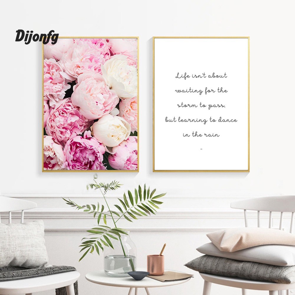 Di Lukisan Kanvas Motif Bunga+Tulisan Quote/Motto Bahasa Inggris …