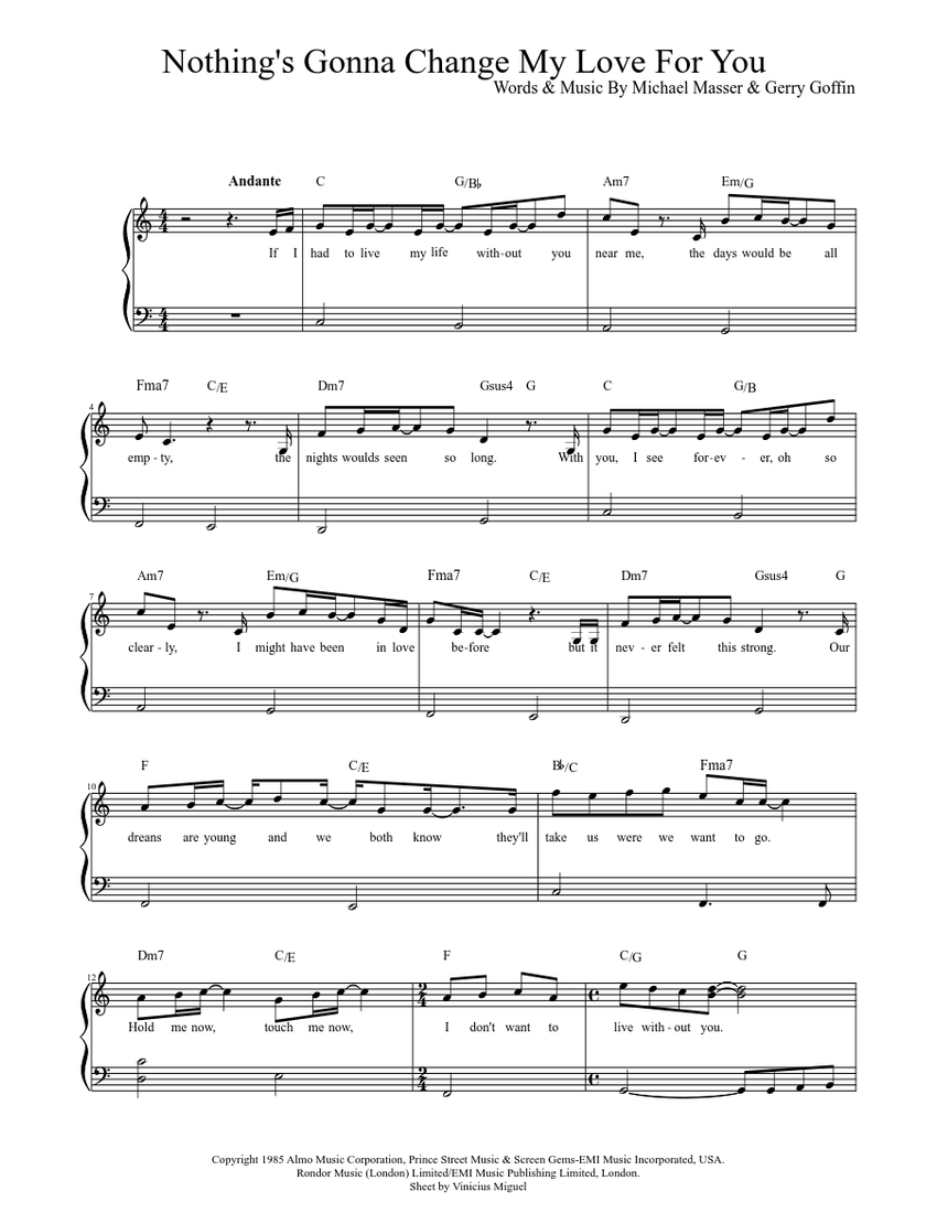 Nothing’s Gonna Change My Love For You Sheet Music (Piano, Voice, Guitar) - PDF Download & Streaming - OKTAV