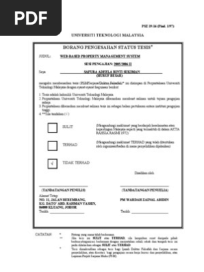 BORANG PENGESAHAN STATUS TESIS UNIVERSITI TEKNOLOGI MALAYSIA