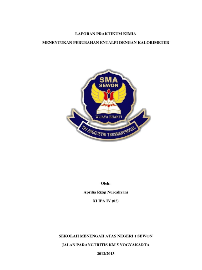 DOC) Laporan Hasil Praktikum Kimia Menentukan Perubahan Entalpi …