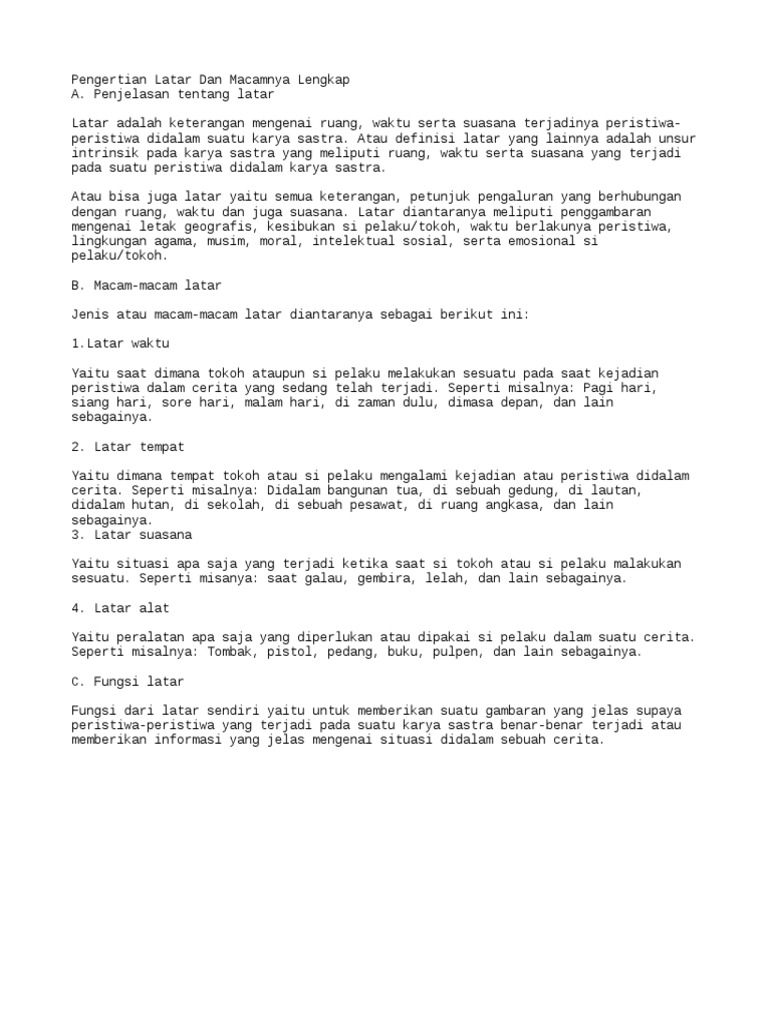 Pengertian Latar Dan Macamnya Lengkap