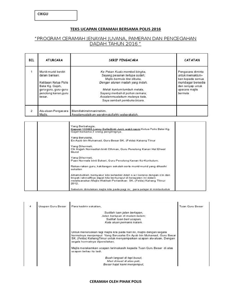 Teks Ucapan Ceramah Bersama Polis 2016