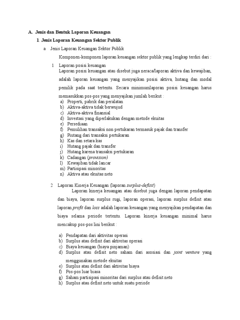 Jenis Dan Bentuk Laporan Keuangan Sektor Publik Dan Sektor Bisnis