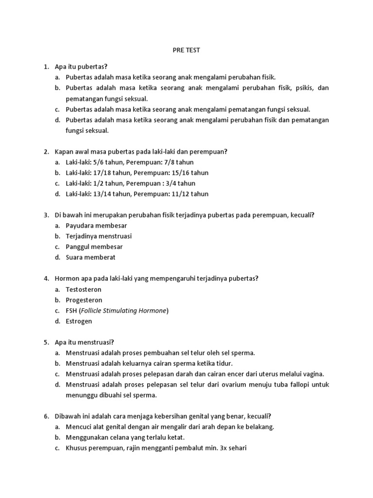 Soal Pretest Dan Post Test CIP SMP 1 (Sex Education)