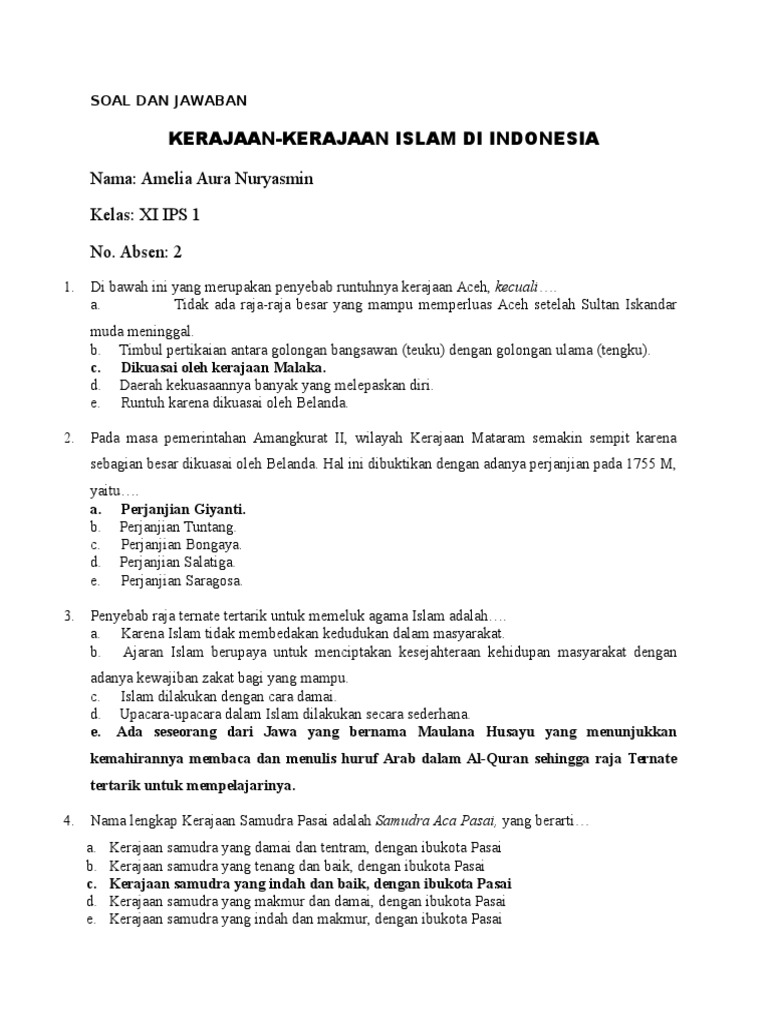 Soal Kerajaan Islam Di Indonesia Beserta Jawaban