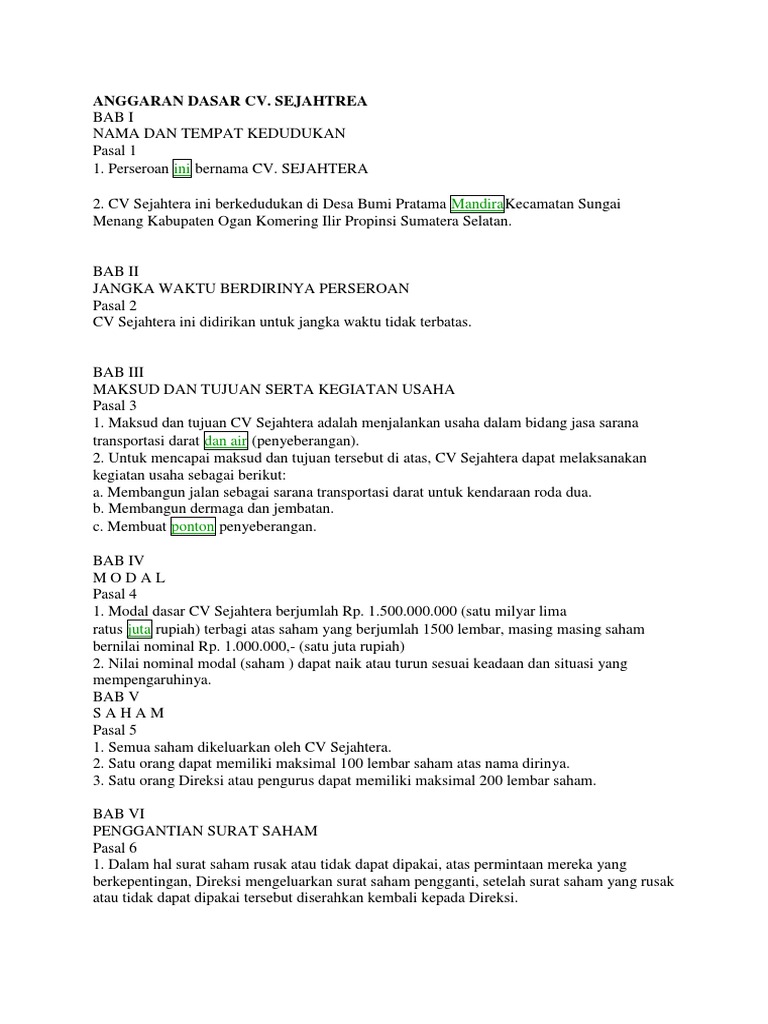 Contoh Anggaran Dasar Dan Anggaran Rumah Tangga Cv - Barisan Contoh