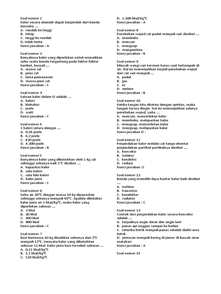 SOAL UH IPA KELAS 7 SEMESTER 1 BAB KALOR DALAM PERUBAHAN WUJUD BENDA