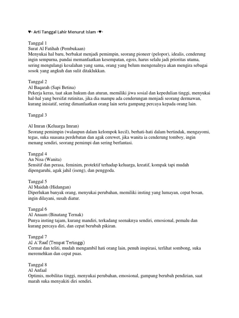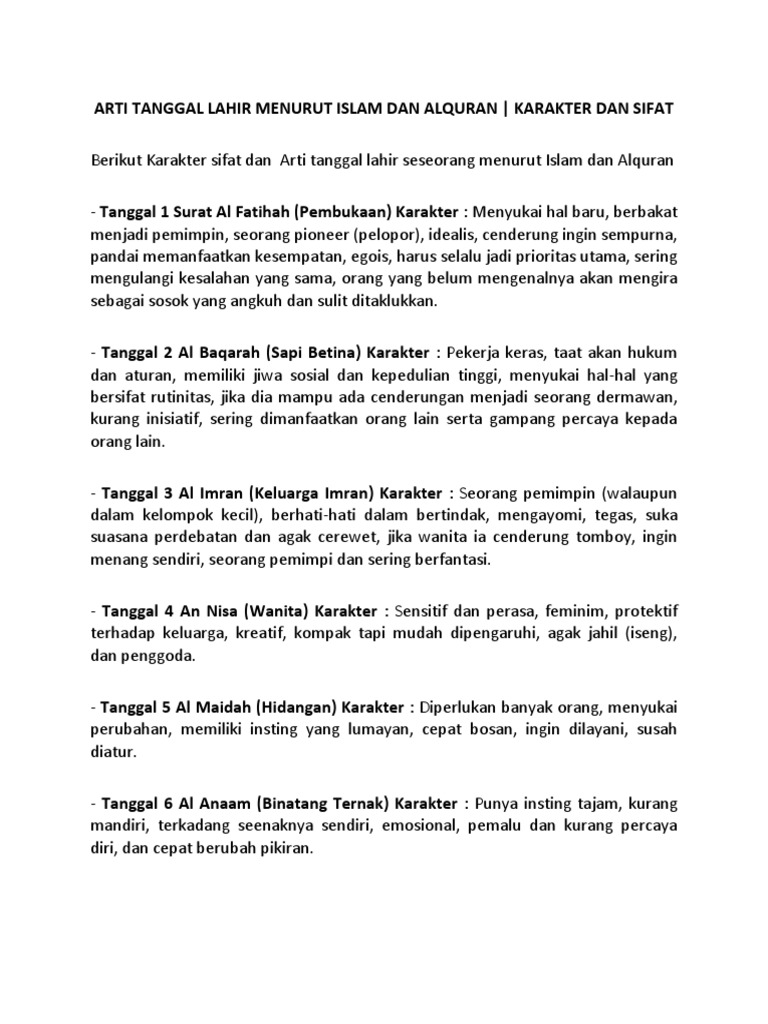 ARTI TANGGAL LAHIR MENURUT ISLAM DAN ALQURAN KARAKTER DAN SIFAT …