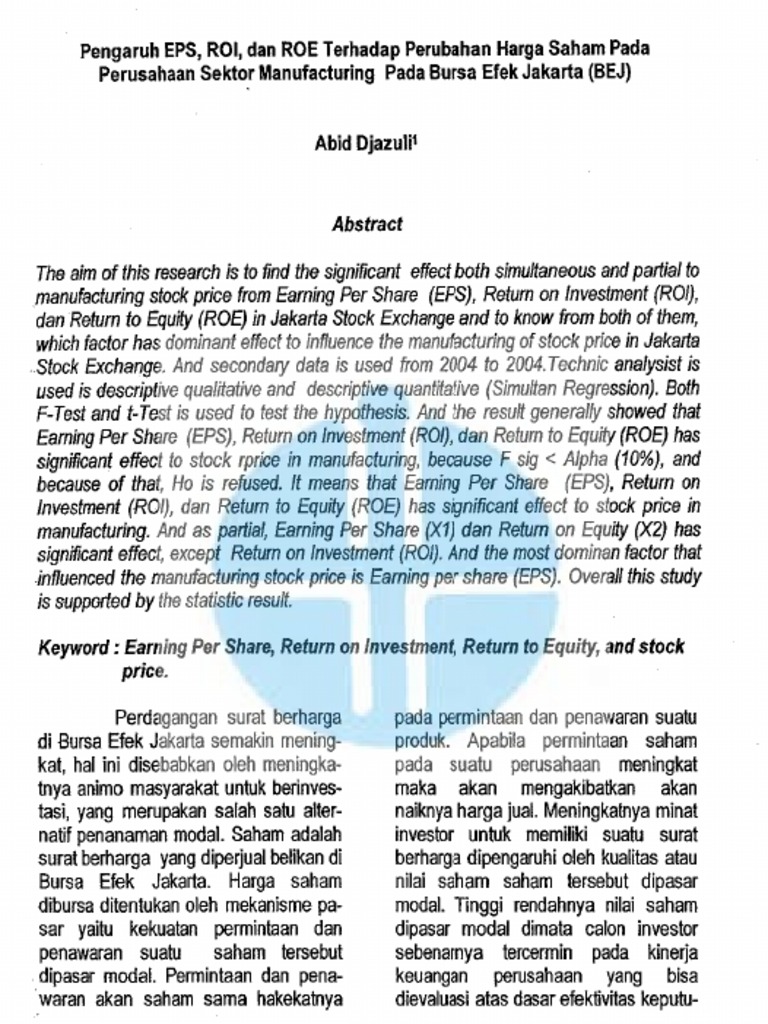 (31) Pengaruh EPS_ROI Dan ROE Terhadap Perubahan Harga Saham Pada an Sektor Manufacturing
