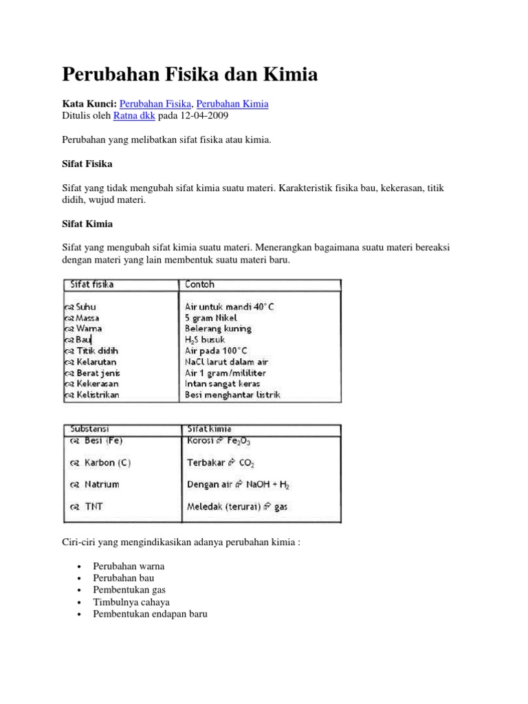 Contoh perubahan fisika dan perubahan kimia - Fisika dan Matematika