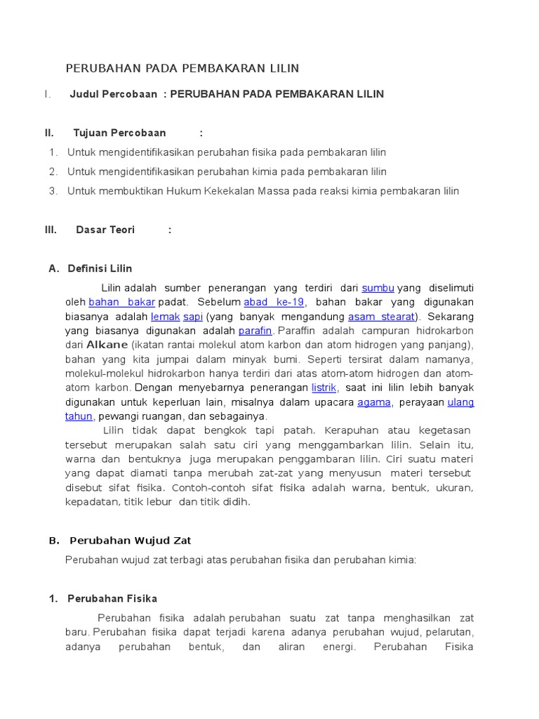 DOC) PERUBAHAN PADA PEMBAKARAN LILIN | Monika Tiara - Academia.edu