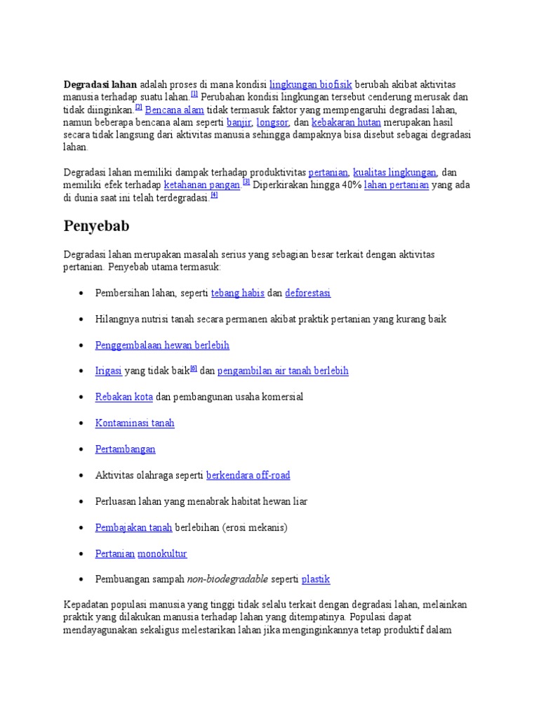Degradasi Lahan Adalah Proses Di Mana Kondisi Lingkungan Biofisik Berubah Akibat Aktivitas Manusia Terhadap Suatu Lahan