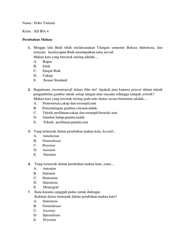 PDF) PERUBAHAN MAKNA : SEMANTIK | Yeni Ernawati - Academia.edu