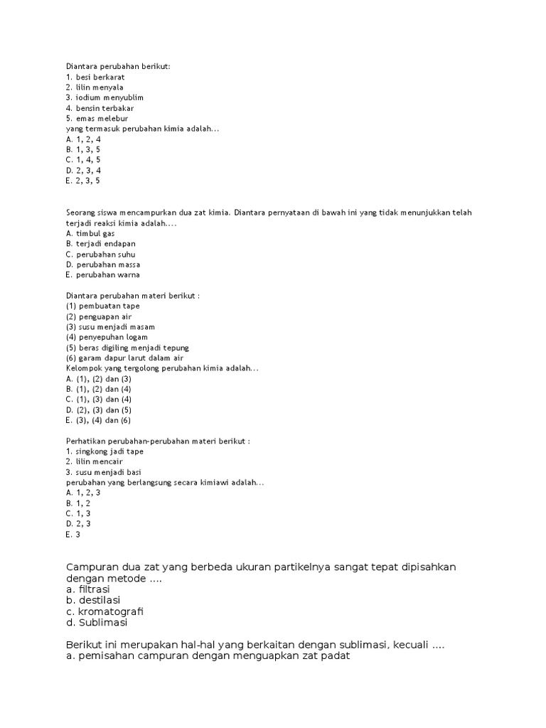 Soal perubahan fisika dan kimia kelas 7 kurikulum 2013 edisi revisi 2017 - Fisika dan Matematika