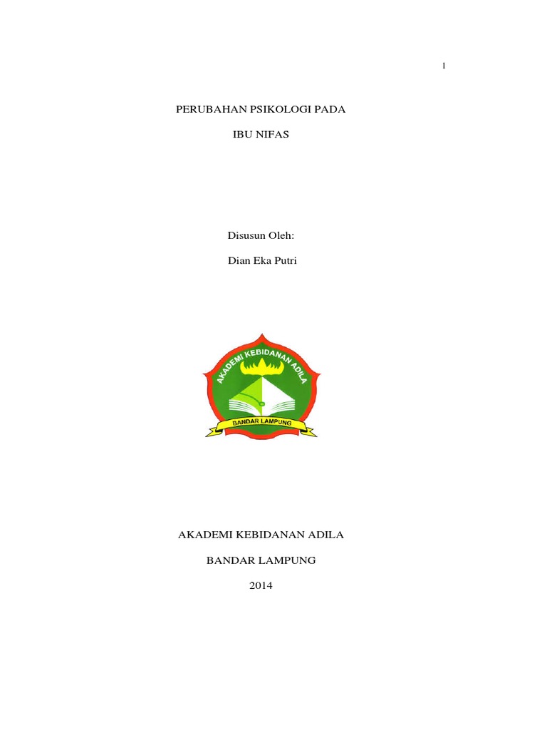 MAKALAH PERUBAHAN PSIKOLOGI MASA NIFAS - KTI Kebidanan