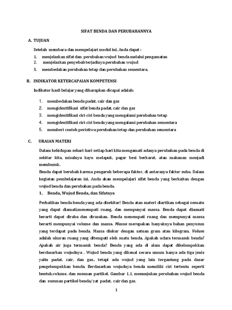PDF) PTK PERUBAHAN SIFAT BENDA KELAS V | Aulia Rahman - Academia.edu