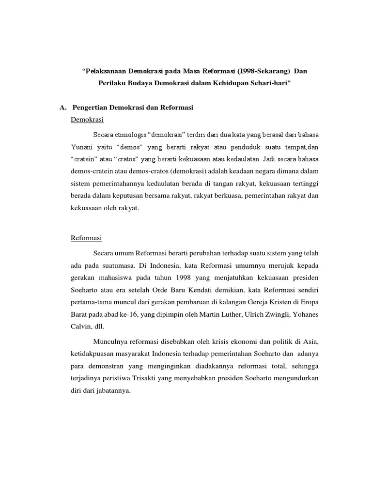 DOC) PELAKSANAAN DEMOKRASI PADA MASA REFORMASI klpk 3 | Yudi Suardi - Academia.edu