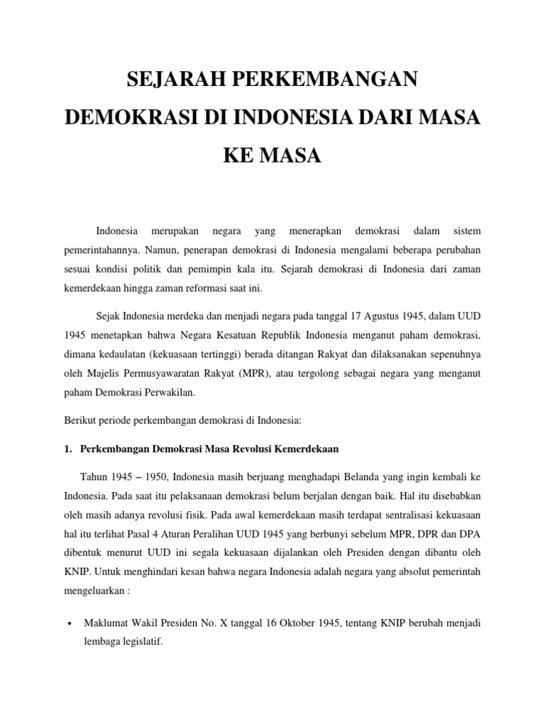 SEJARAH PERKEMBANGAN DEMOKRASI INDONESIA DARI MASA KE MASA