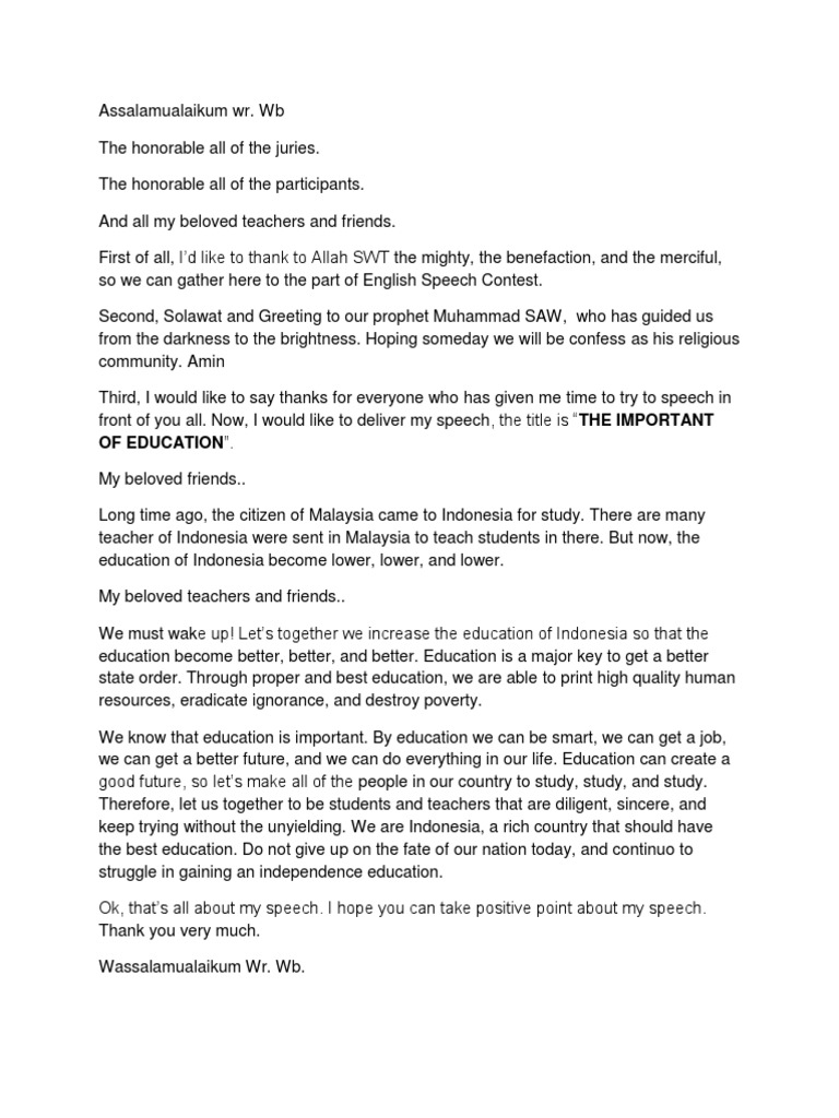 DOC) Pidato bahasa inggris tentang pendidikan | Chrisye Tumigolung - Academia.edu