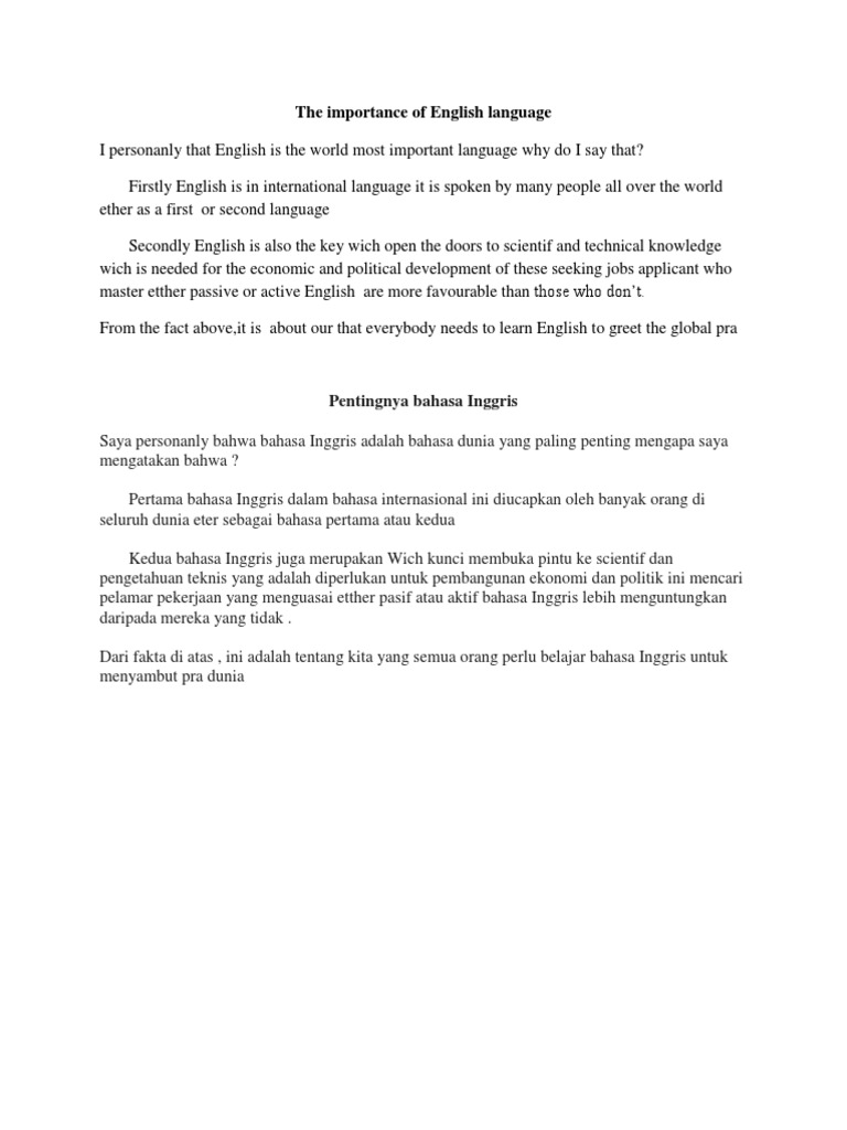 The importance of English language.docx | Bahasa Indonesia | Hubungan Sintaksis