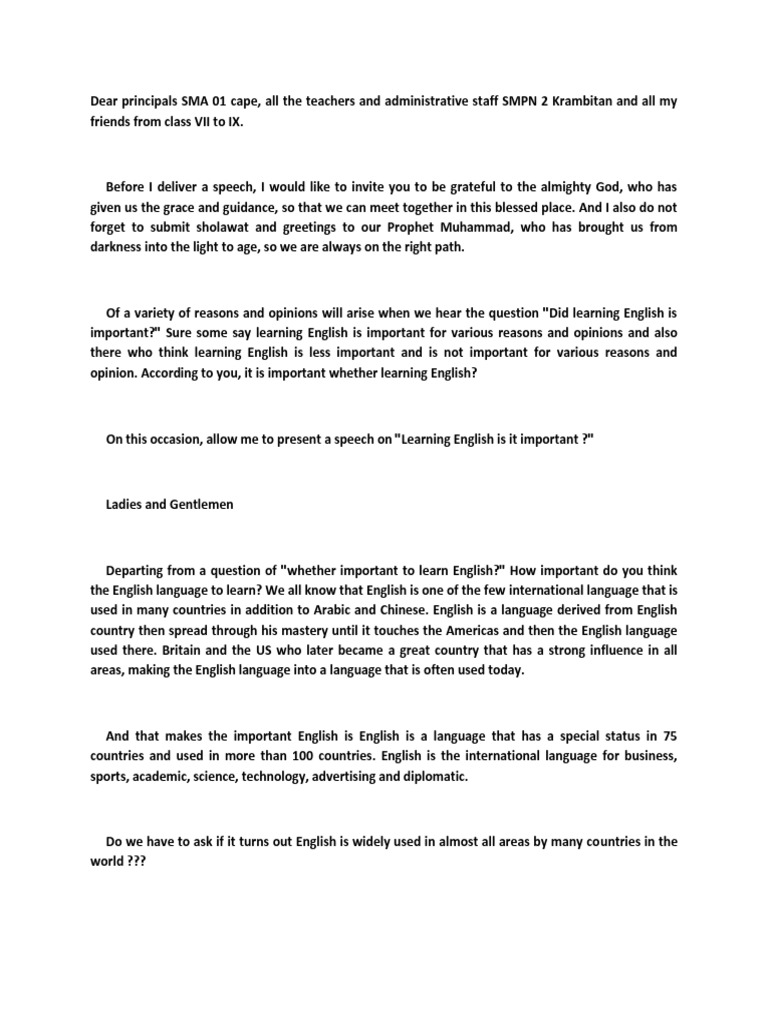 DOC) PIDATO BAHASA INGGRIS | kharitsma agisna fariz - Academia.edu