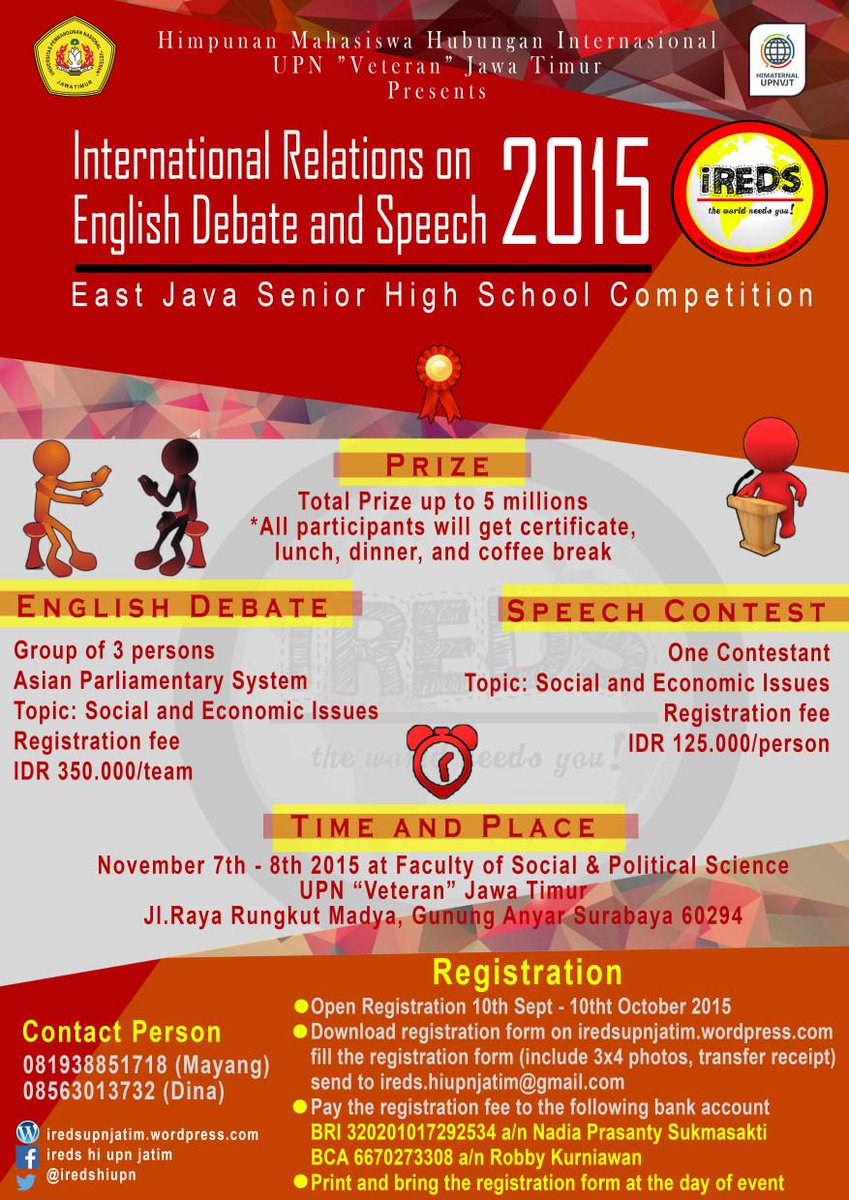Event Surabaya Twitterissä: “Daftarkan SMA mu menjadi perwakilan dalam lomba debat dan pidato bahasa Inggris se-Jawa Timur dalam IREDS 2015! http://t.co/kyf3zWW9zL”