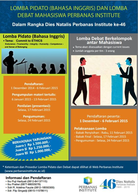 Twitter Perbanas Institute: “Ayo daftar, ikuti Lomba Pidato Bhs Inggris & Debat antar Mahasiswa dlm rangka Dies Natalis ke 46 Perbanas Institute. http://t.co/xeyeDeXPYu”