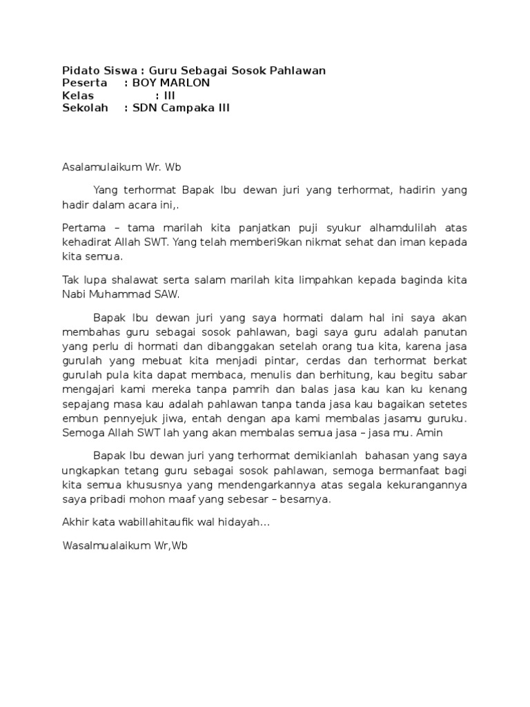 Pidato Siswa: Guru Sebagai Sosok Pahlawan Peserta: Boy Marlon …