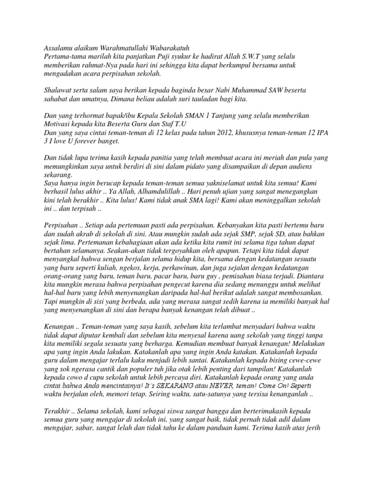 DOC) Contoh Pidato Perpisahan KELAS 9 | JayKummarhe Zazg - Academia.edu