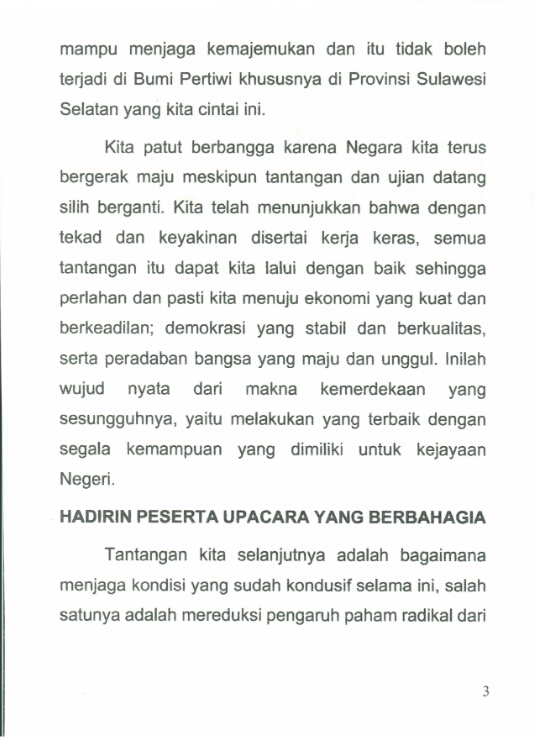 Pidato Seragam Gubernur Sulsel pada Upacara Peringatan Detik-detik Prokem RI ke-72 Tanggal 17 Agustus 2017 - suara palapa
