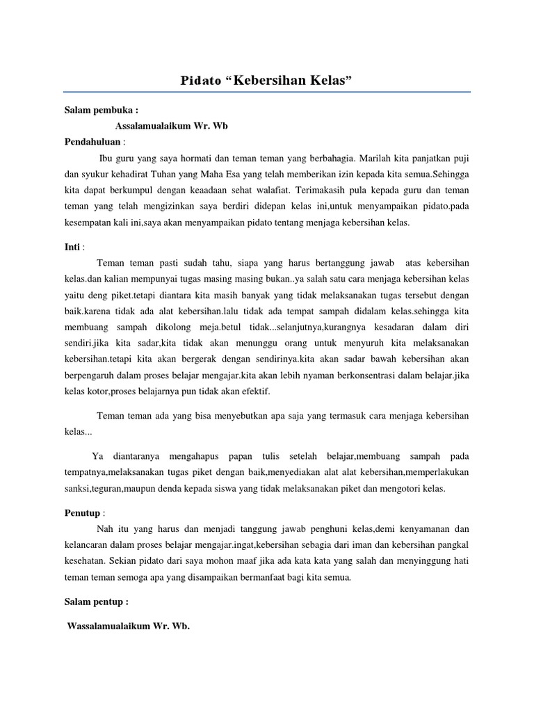 Pidato tentang menjaga kebersihan lingkungan - Brainly.co.id