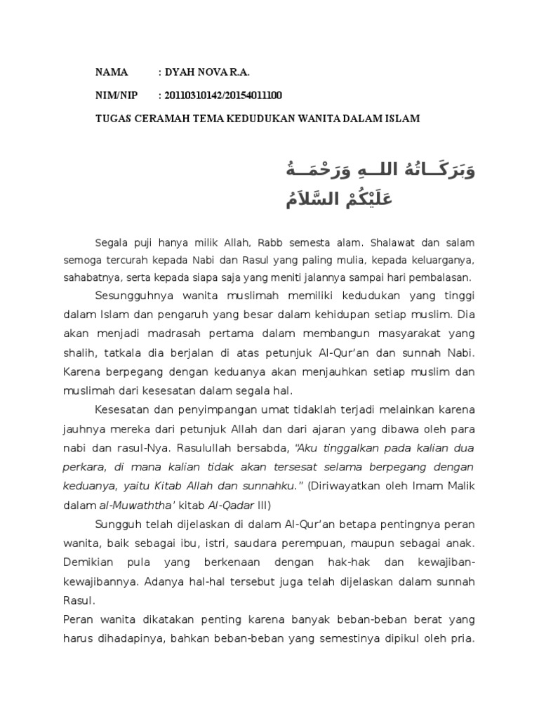 DOC) PIDATO TENTANG KEMULIAAN WANITA | Nurul Ariiska - Academia.edu