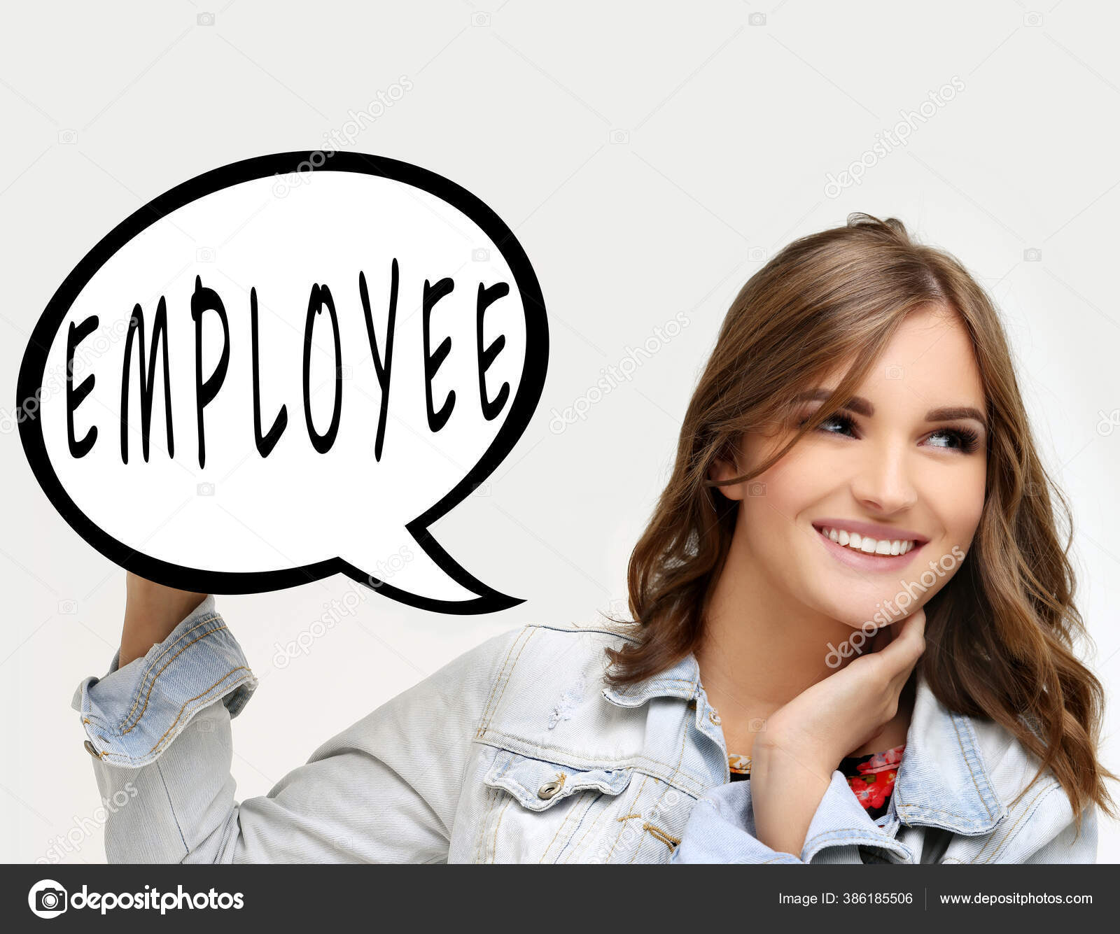 Wanita Muda Memegang Gelembung Pidato Dengan Kata Kata Ditarik — Stok Foto © Lado2020 #386185506