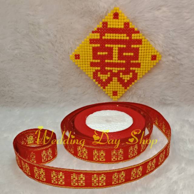 PITA KAIN MOTIF SHUANG XI / SANGJIT TULISAN BENANG WARNA EMAS | Shopee Indonesia