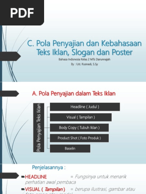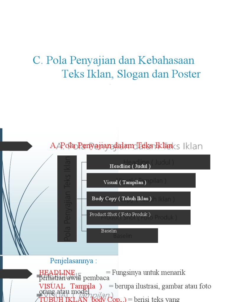 C. Pola Penyajian dan Kebahasaan Teks Iklan, Slogan dan Poster