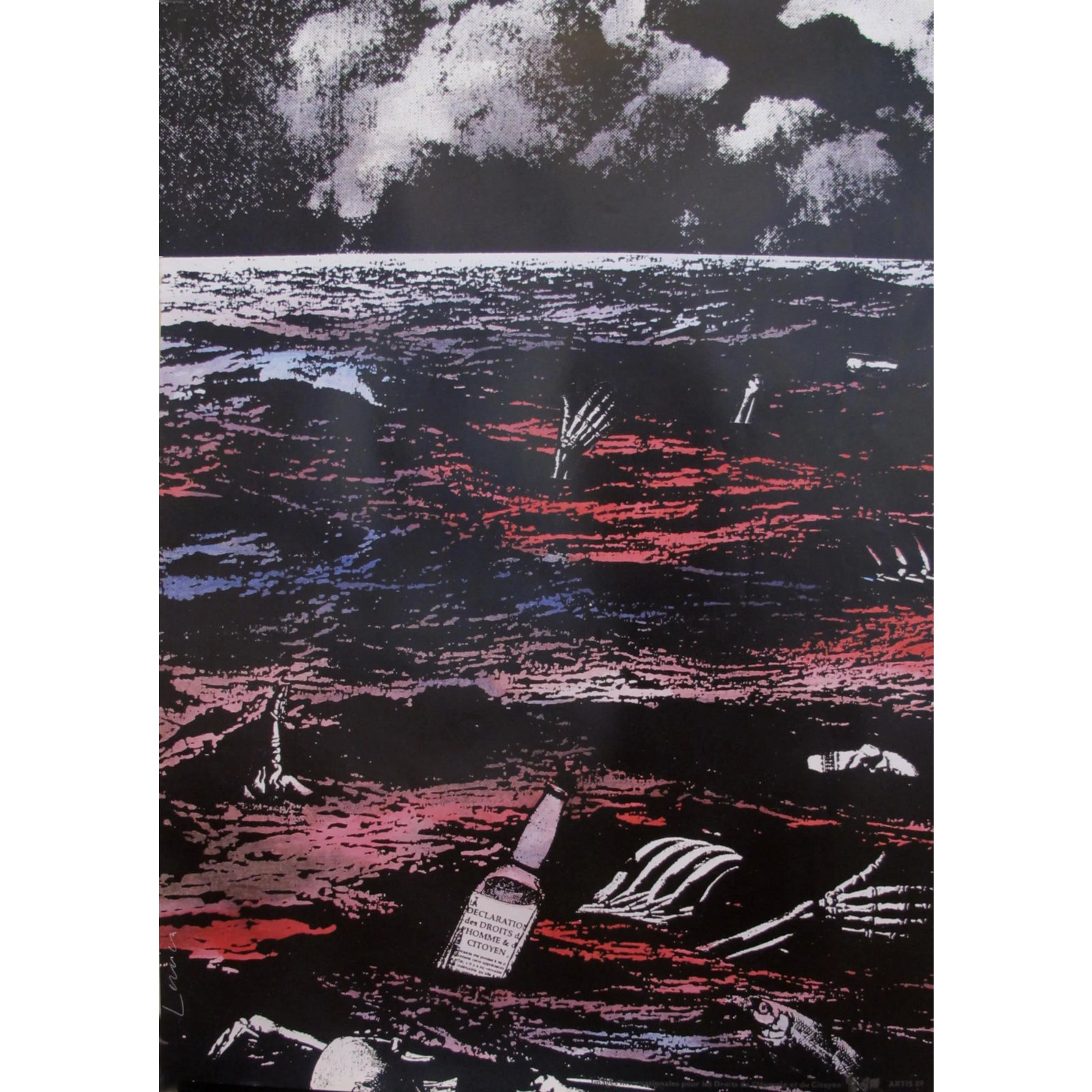 1989 Original Poster for Artis 89’s Images Internationales Pour Les Droits De l’Homme Et Du Citoyen - Sea of Death | Chairish