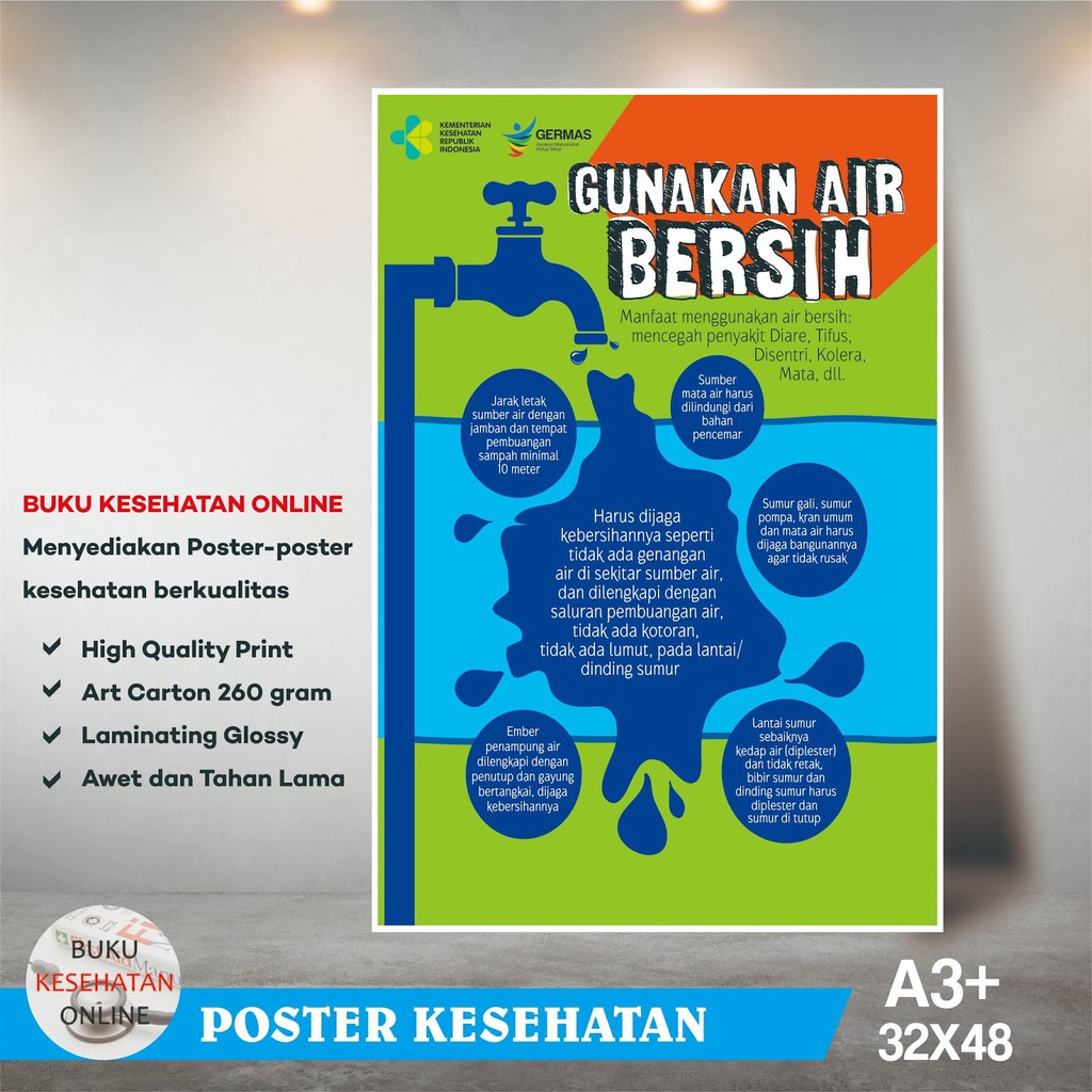 Poster Kesehatan - GUNAKAN AIR BERSIH - LAMINATING GLOSSY | Shopee …
