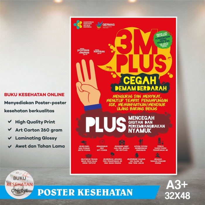 Jual Poster Kesehatan 3M Plus Cegah Demam Berdarah - Laminating …