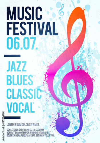 Vector illustration template poster flyer music festival event with clef illustration and texture watercolor splash effect. - Buy this stock vector and explore similar vectors at Adobe Stock | Adobe Stock