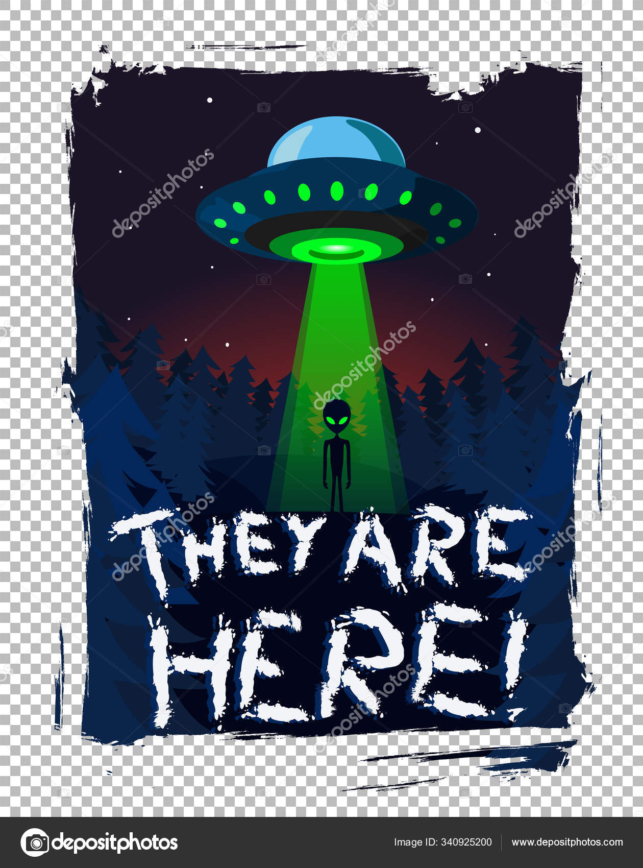 Invasi Alien di Bumi. UFO di malam hari. Poster artwork pada latar belakang yang terisolasi — Stok Vektor © RR2094 #340925200