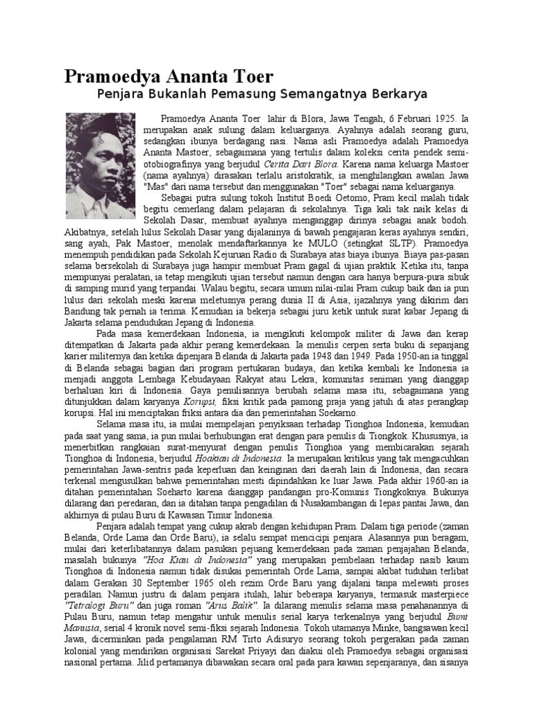 DOC) BIOGRAFI PRAMOEDYA ANANTA TOER | Tiara Rahartono - Academia.edu