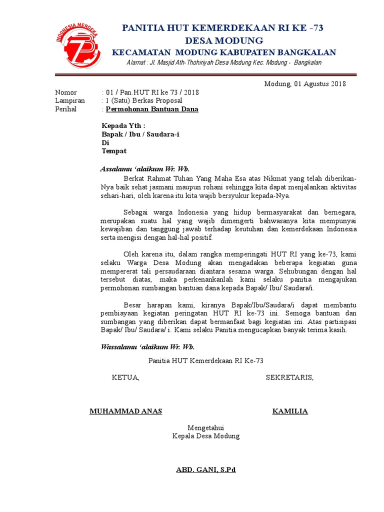 Contoh Surat Permohonan Bantuan Dana dan Proposal Kegiatan HUT RI | Surat, Proposal, Tesis