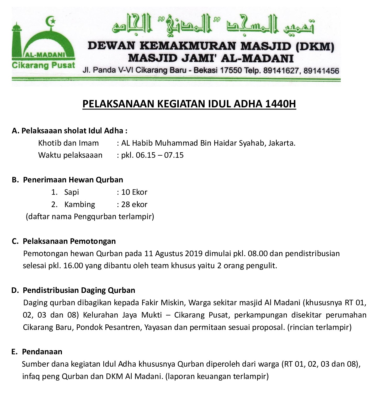 KEGIATAN IDUL QURBAN 1440 H DKM ALMADANI - Oficial Website Masjid Almadani