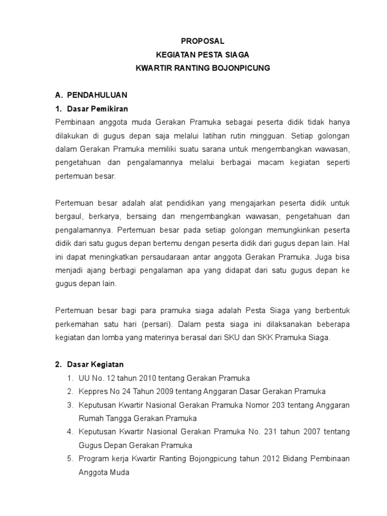 DOC) Proposal Perkemahan Pelantikan Pramuka Penggalang | Safi’i Sungai-Balum - Academia.edu