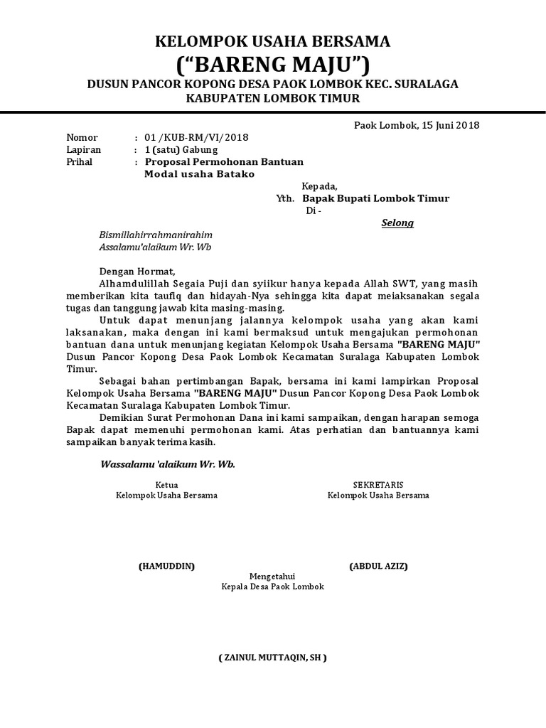Contoh Surat Pengantar Proposal Usaha/Kelompok Usaha Bersama (KUB …