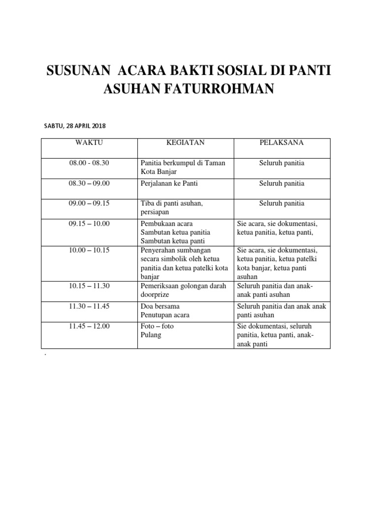 Susunan Acara Bakti Sosial Di Panti Asuhan Faturrohman