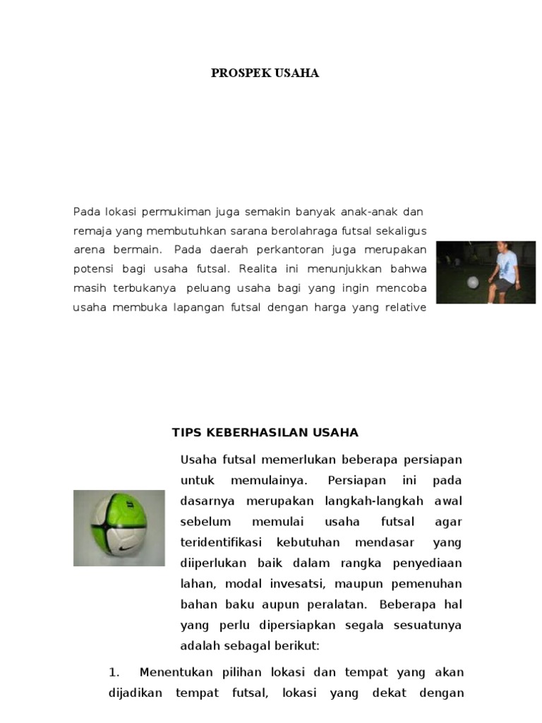 DOC) Proposal Usaha Bisnis ( Futsal ) | Arya Sidarta - Academia.edu