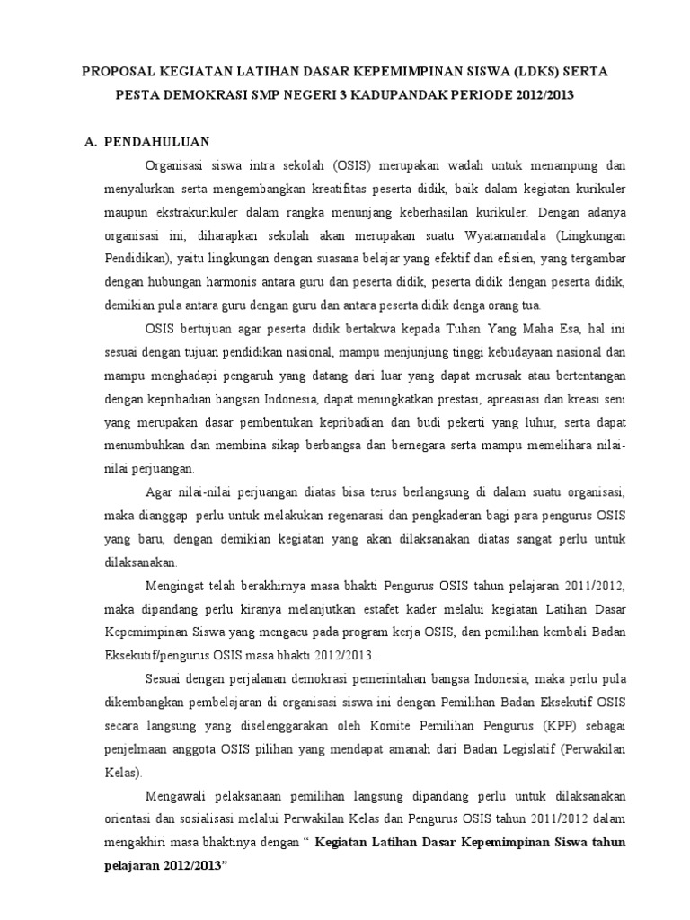 Contoh Proposal LDKS SMP Terbaru - Berkas Sekolah