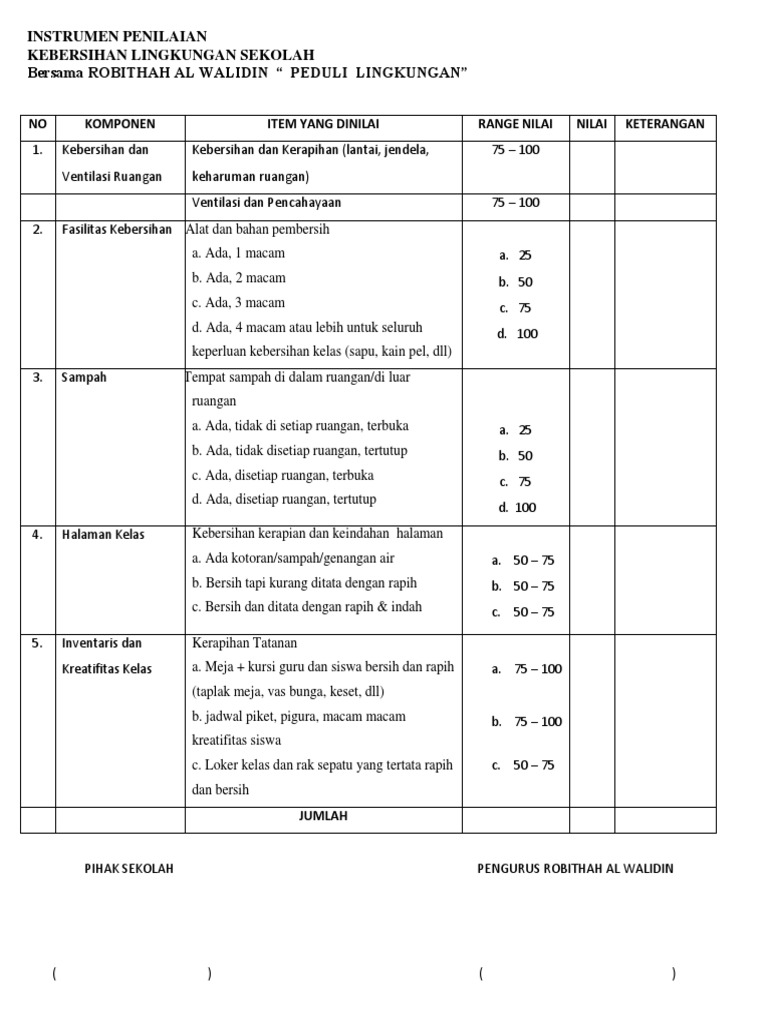 Blangko Penilai Lomba Kebersihan Kelas - [DOCX Document]