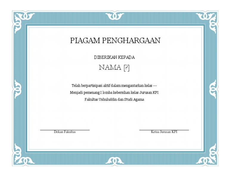 Piagam Penghargaan Lomba - .contoh piagam penghargaan lomba kebersihan kelas Sama seperti perubahan - [PDF Document]